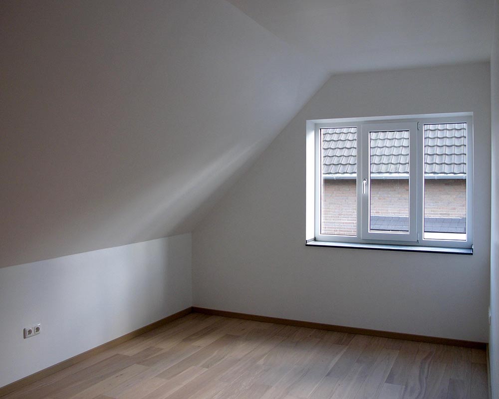 Das erste von 3 nebeneinander liegenden Einfamilienhäusern wurde auf einem L-förmigen Grundstück an einer kleinteiligen Dorfstraße erstellt, erschlossen über einen Eingangshof, der zum Nachbarn von einem Carport und einem Abstellraum und zur Straße von einem elektrisch betriebenen Stahlschiebetor begrenzt wird. Das Ensemble nimmt Elemente der in der Gegend üblichen Bauernhöfe auf, wie den rotbunten Mauerziegel, den mit Ziegeln gepflasterten Eingangshof und die Holzkonstruktion der Carportüberdachung. Die Grundrisse der drei Häuser sind geprägt von einer offenen Raumfolge im Erdgeschoss und einem großzügigen offenen Treppenaufgang, die Materialien des Innenausbaus sind schlicht und strapazierfähig ausgewählt, da die Häuser vermietet werden. Die Heizung der hochwärmegedämmten Häuser wird durch Solarkollektoren in der südlichen Dachfläche unterstützt.